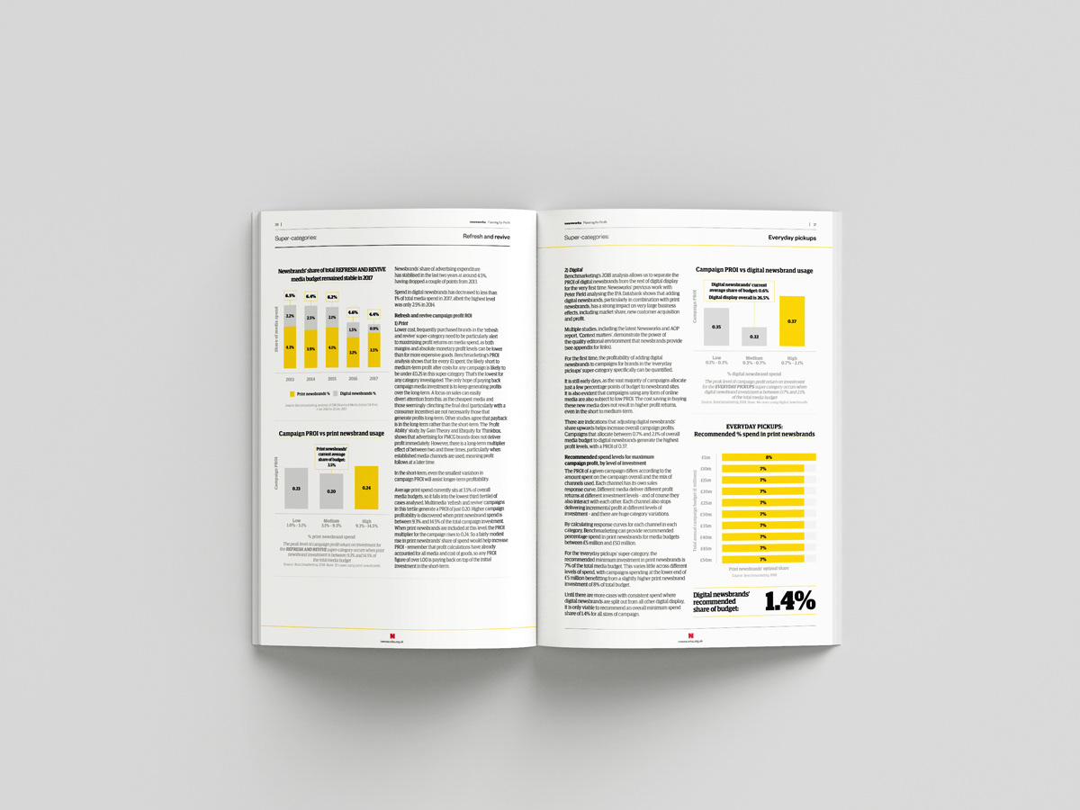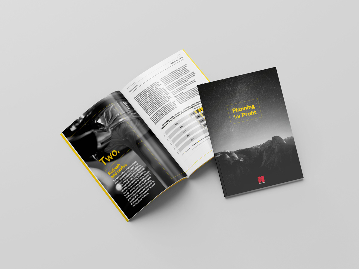 Creative an engaging identity and extensive printed report on Newsworks Planning for Profit research. This also entailed creating a bespoke digital hub and profit calculator widget for the company site.